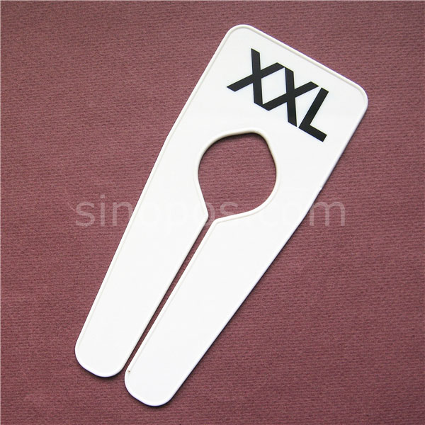 Plastic Frustum Size Marker for hanger, trapezoid shaped & slip-over style